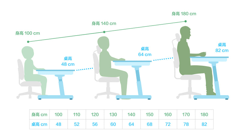 因每個人身高及腿長比例不同,很難適用同樣高度的辦公桌椅,因此可以考慮使用可調整的升降桌,包含手動、氣壓、電動升降桌等。