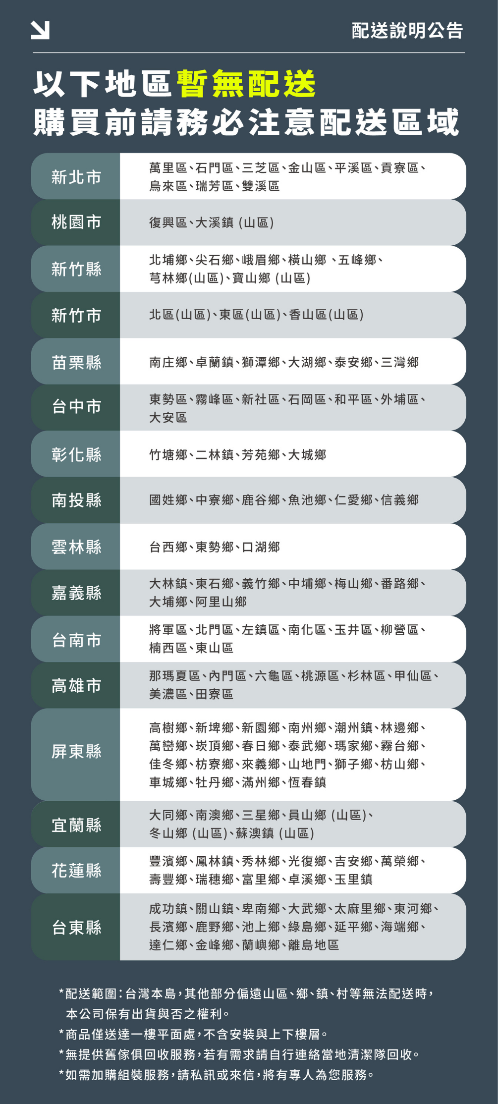 詳細配送範圍請見「配送說明公告」圖 ,